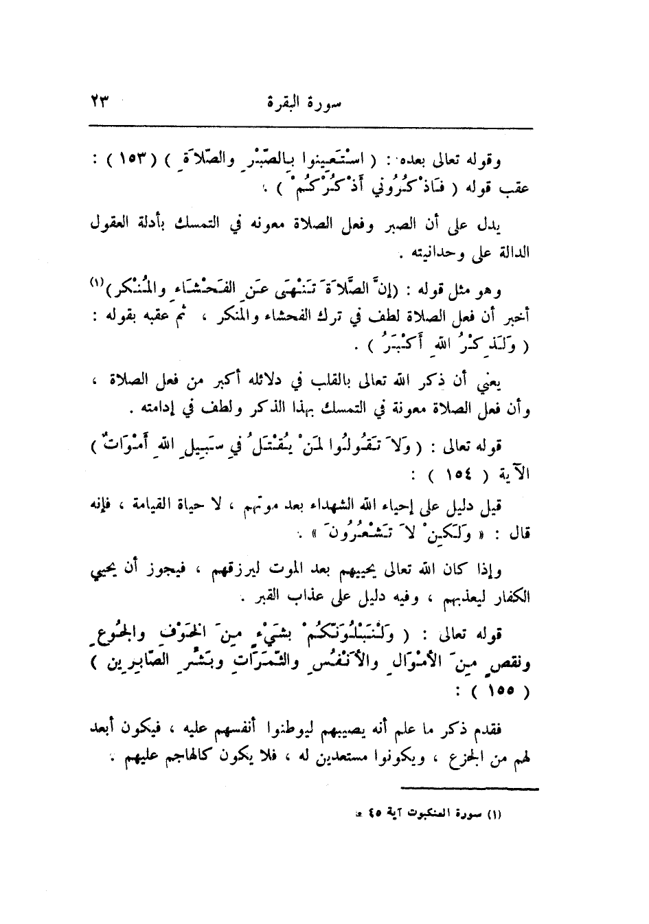 وقوله تعالى بعده: (اسْتَعِينُوا بِالصَّبْرِ وَالصَّلاةِ) (153) :