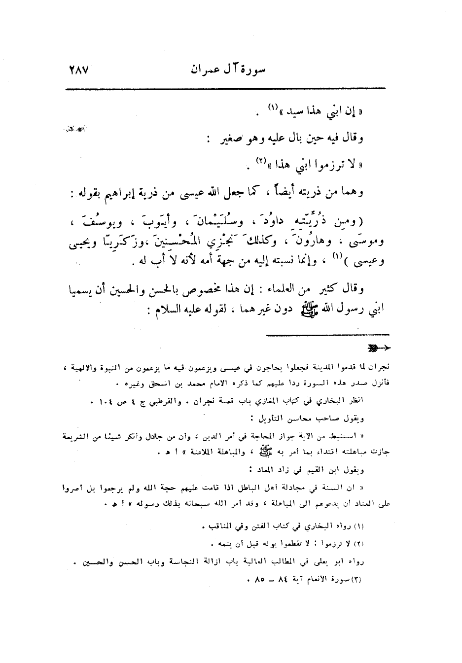 وقال كثير من العلماء: إن هذا مخصوص بالحسن والحسين أن يسميا ابني رسول الله صلّى الله عليه وسلم دون غيرهما، لقوله عليه السلام: