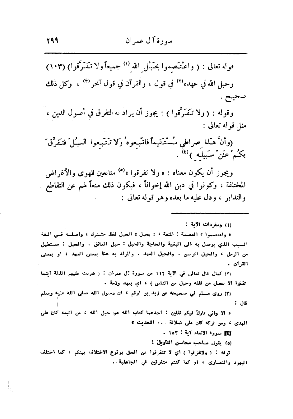 (وَأَنَّ هذا صِراطِي مُسْتَقِيماً فَاتَّبِعُوهُ وَلا تَتَّبِعُوا السُّبُلَ فَتَفَرَّقَ بِكُمْ عَنْ سَبِيلِهِ) «4» .