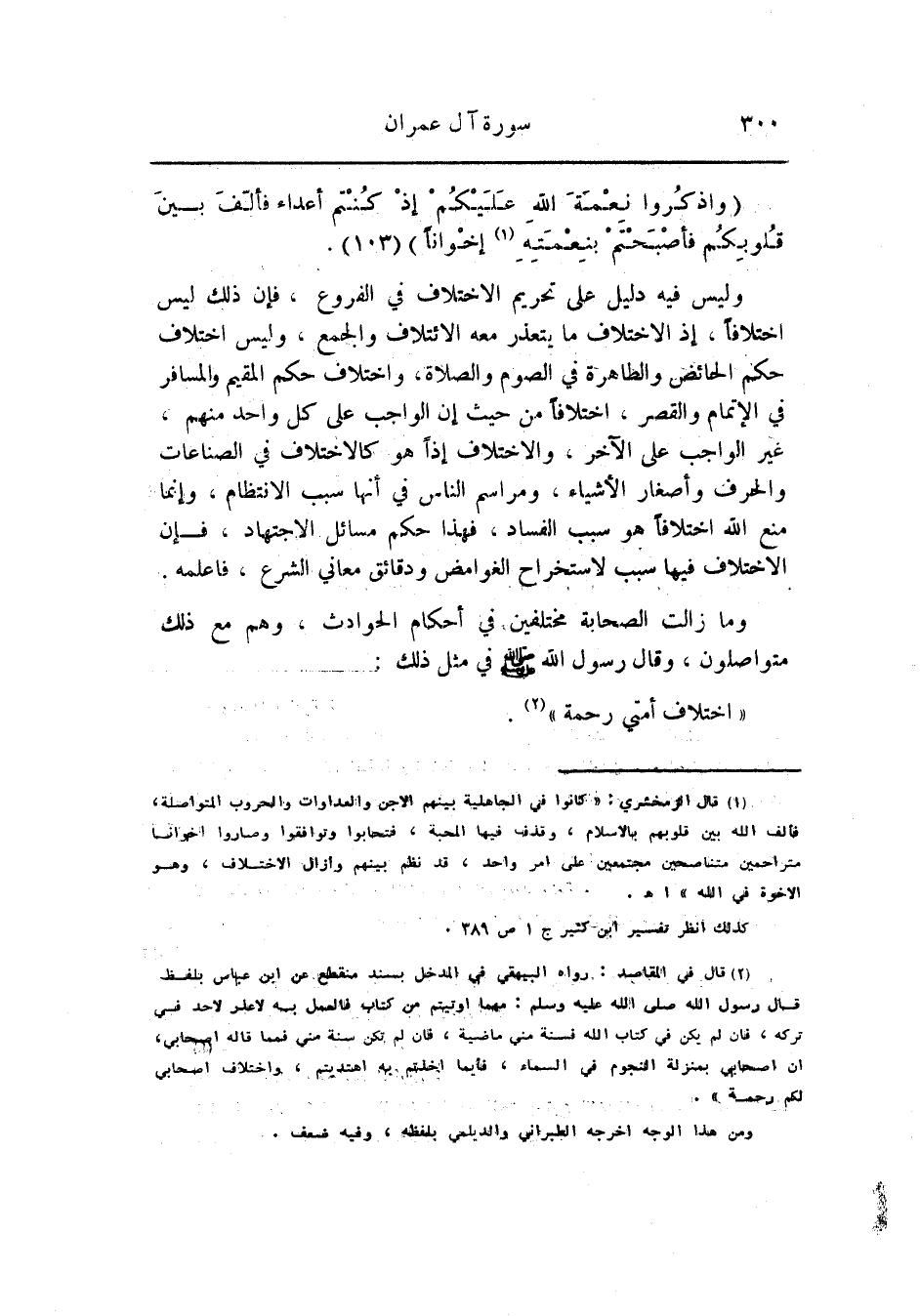 (1) قال الزمخشري: «كانوا في الجاهلية بينهم الآجن والعداوات والحروب المتواصلة، فألف الله بين قلوبهم بالإسلام، وقذف فيها المحبة، فتحابوا وتوافقوا وصاروا إخوانا متراحمين متناصحين مجتمعين على امر واحد، قد نظم بينهم وأزال الاختلاف، وهو الأخوة في الله» اهـ.