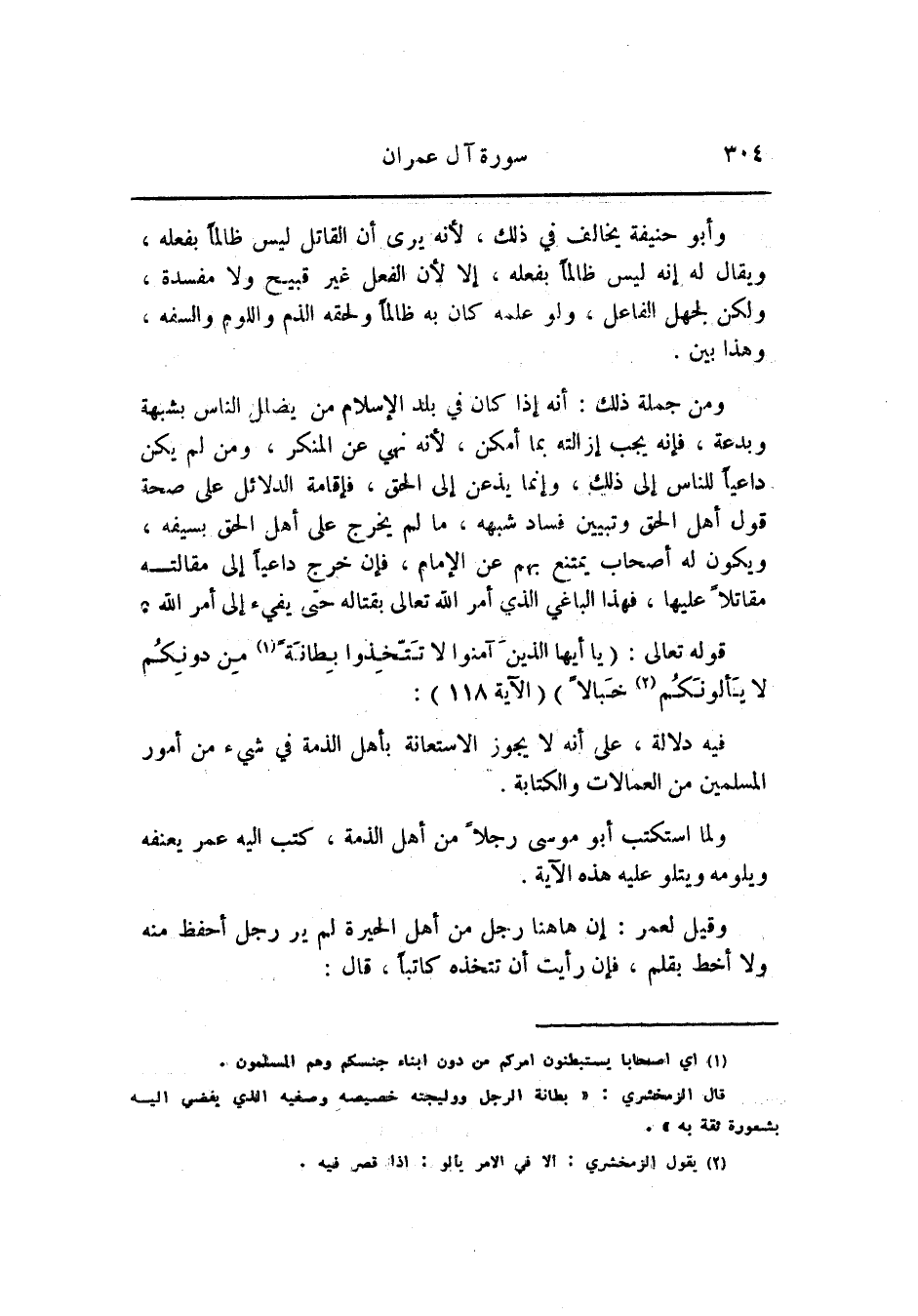 ولما استكتب أبو موسى رجلا من أهل الذمة، كتب اليه عمر يعنفه ويلومه ويتلو عليه هذه الآية.