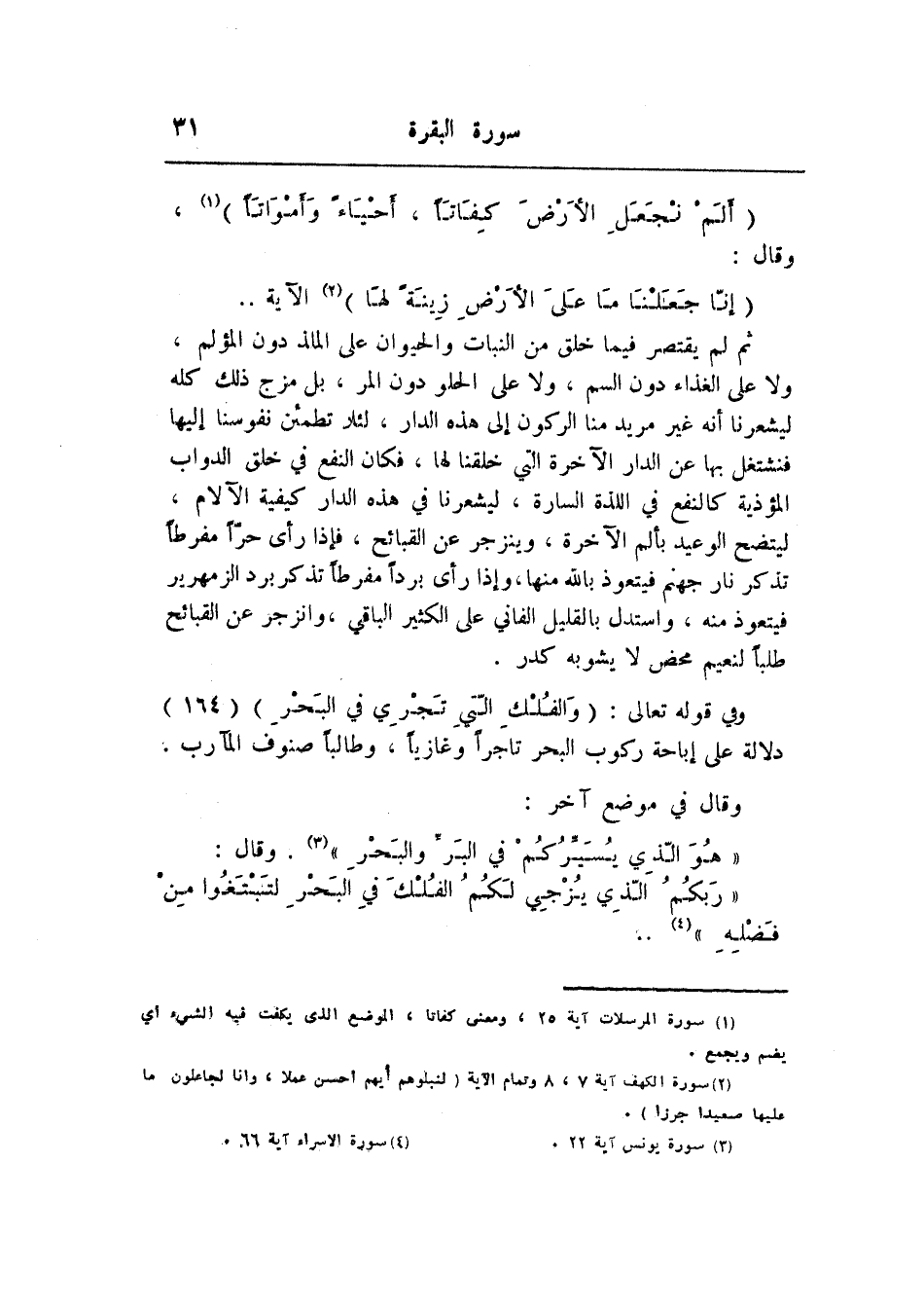 (1) سورة المرسلات آية 25، ومعنى كفاتا، الموضع الذي يكفت فيه الشيء أي يضم ويجمع.