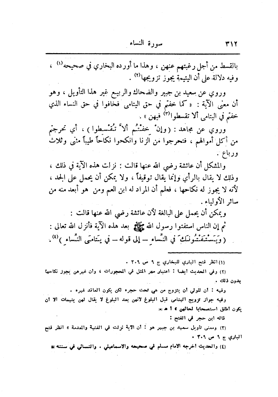 (3) ومعنى تأويل سعيد بن جبير هو: أن الآية نزلت في الغنية والمعدمة» انظر فتح الباري ج 9 ص 309.