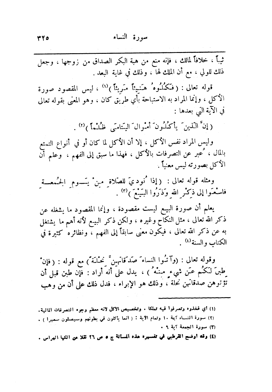 (4) وقد أوضح القرطبي في تفسيره هذه المسألة ج 5 ص 26 نقلا عن الكيا الهراس.