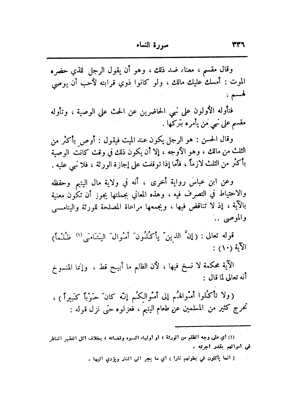 قوله تعالى: (إِنَّ الَّذِينَ يَأْكُلُونَ أَمْوالَ الْيَتامى»
