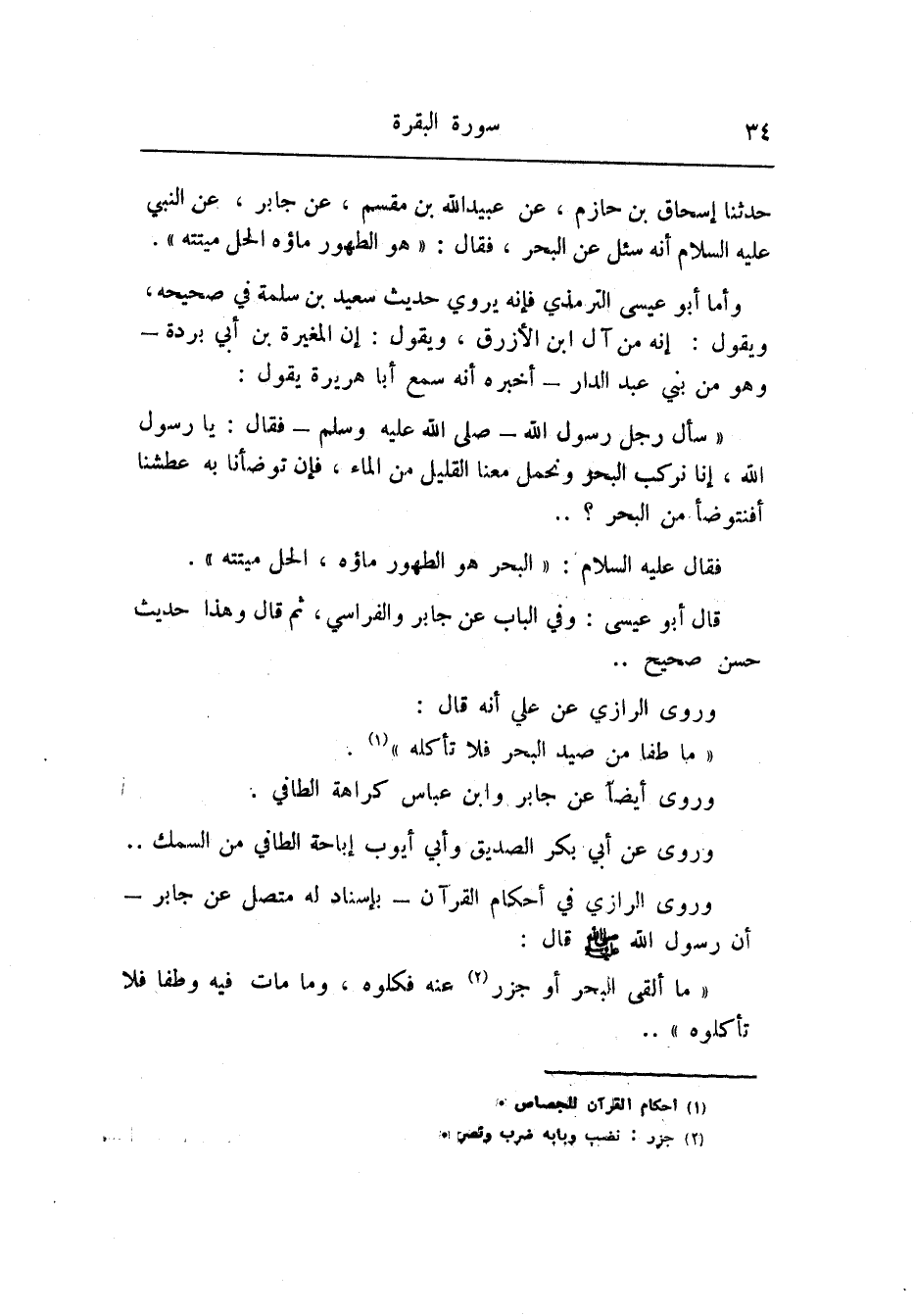 فقال عليه السلام: «البحر هو الطهور ماؤه، الحل ميتته» .