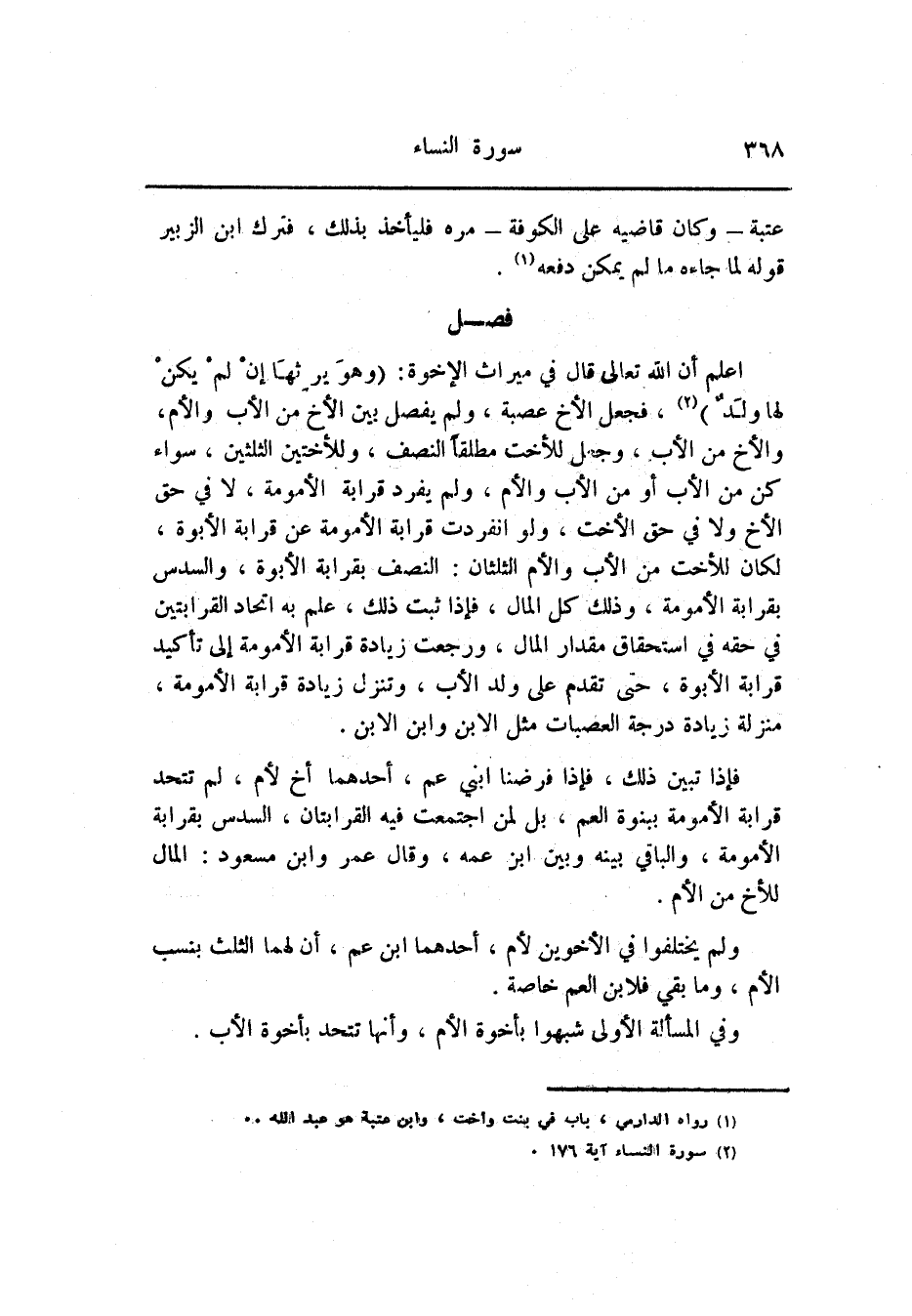 (1) رواه الدارمي، باب في بنت وأخت، وابن عتبة هو عبد الله..
