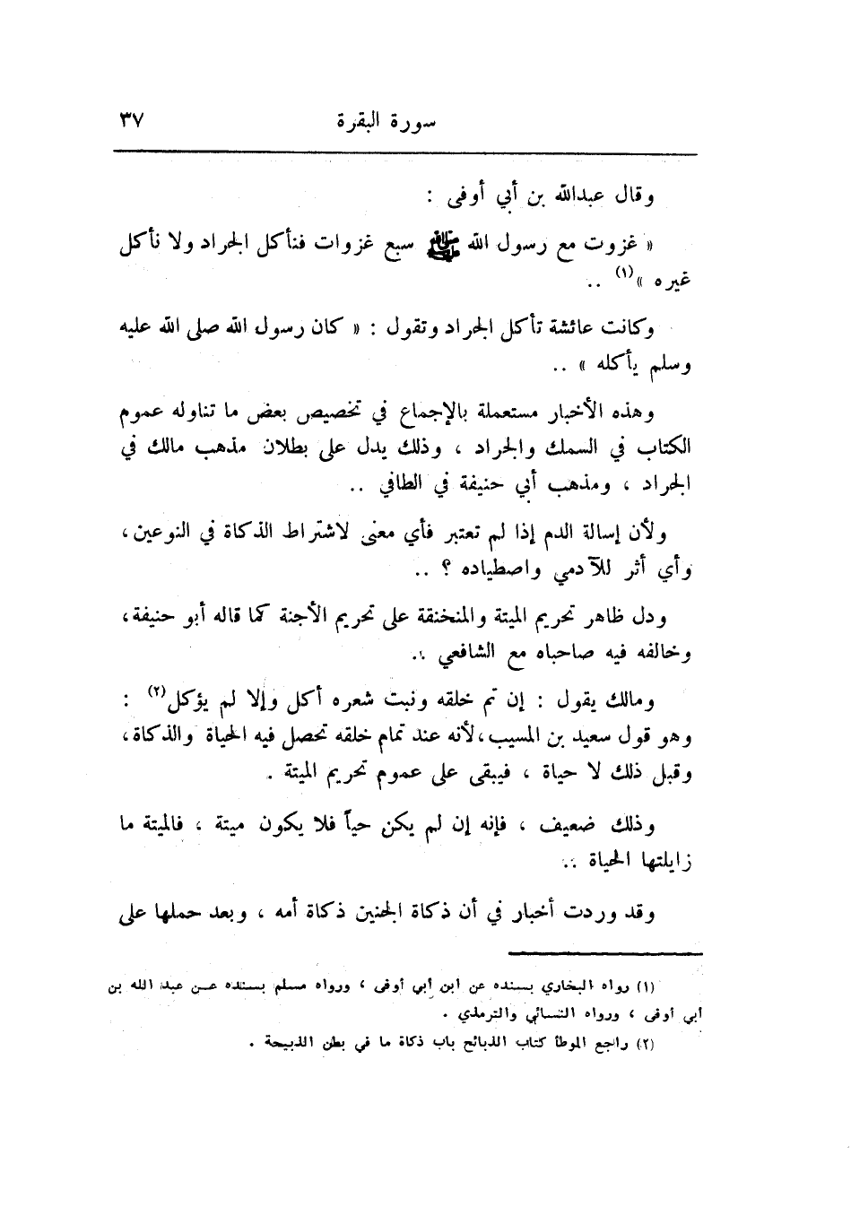 (1) رواه البخاري بسنده عن ابن أبي أوفى، ورواه مسلم بسنده عن عبد الله بن أبي أوفى، ورواه النسائي والترمذي.