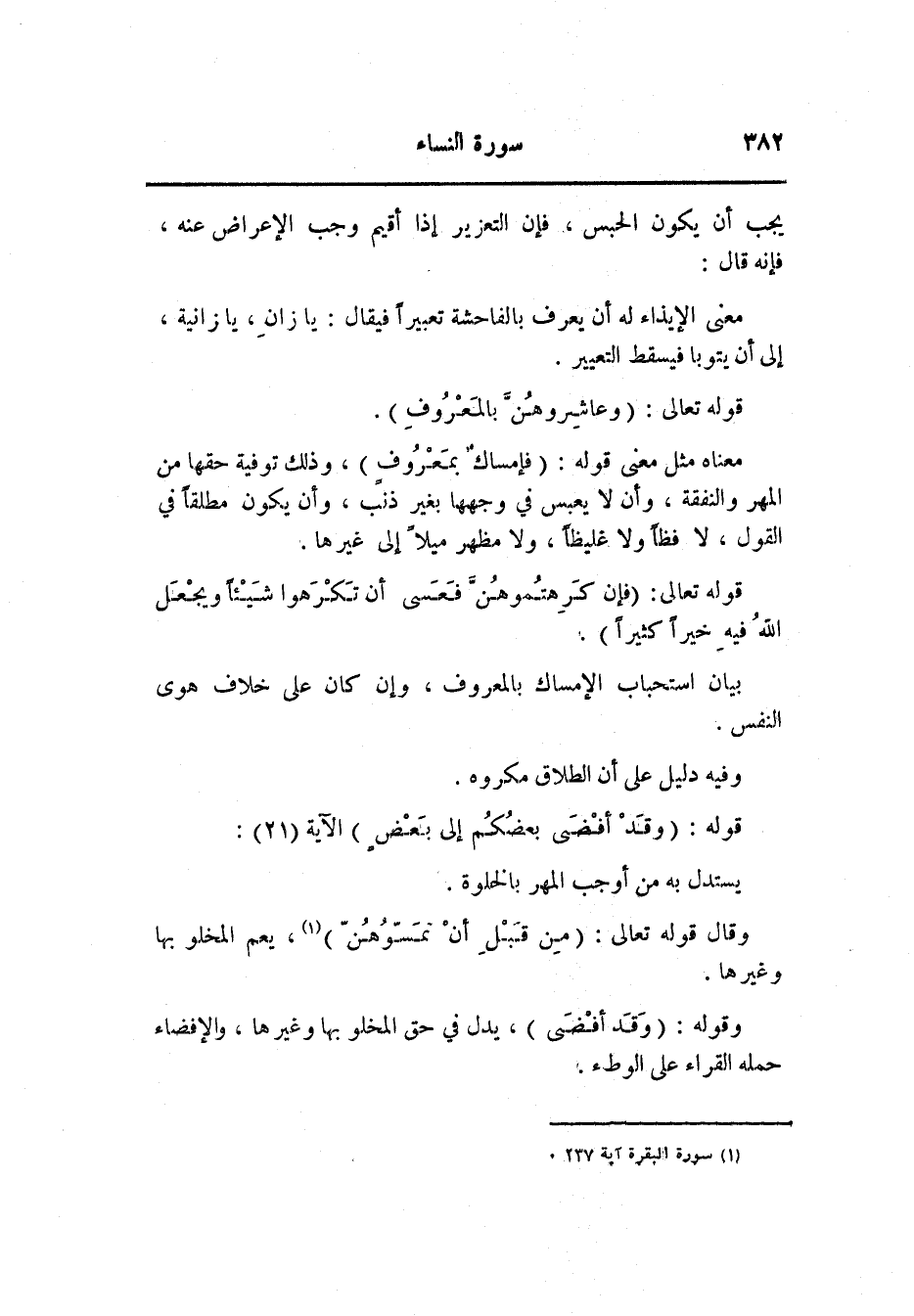 قوله تعالى: (وَعاشِرُوهُنَّ بِالْمَعْرُوفِ) .