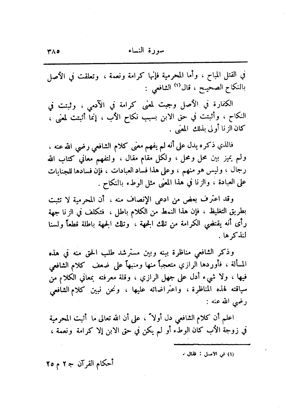 وذكر الشافعي مناظرة بينه وبين مسترشد طلب الحق منه في هذه المسألة، فأوردها الرازي متعجبا منها ومنبها على ضعف كلام الشافعي فيها، ولا شيء أدل على جهل الرازي، وقلة معرفته بمعاني الكلام من سياقته لهذه المناظرة، واعتراضاته عليها، ونحن نبين كلام الشافعي رضي الله عنه: