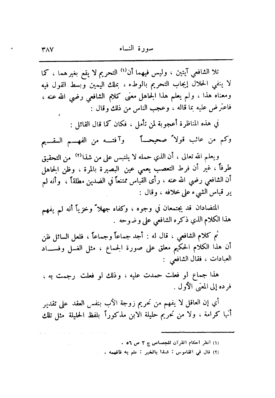(1) انظر أحكام القرآن للجصاص ج 3 ص 56.