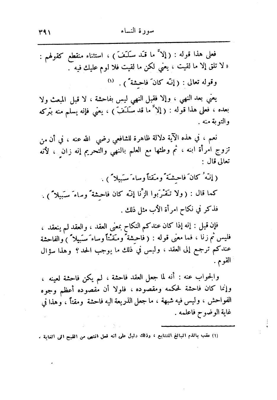 فإن قيل: إنه إذا كان عندكم النكاح بمعنى العقد، والعقد لم ينعقد، فليس ثم زنا، فما معنى قوله: (فاحِشَةً وَمَقْتاً وَساءَ سَبِيلًا) والفاحشة عندكم ترجع إلى العقد، وليس في ذلك ما يوجب الحد؟ وهذا سؤال القوم.