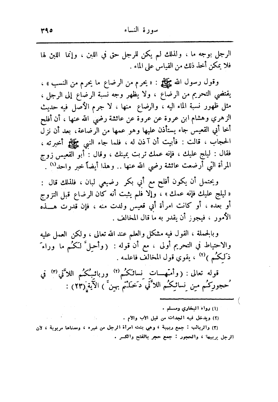قوله تعالى: (وَأُمَّهاتُ نِسائِكُمْ «2» وَرَبائِبُكُمُ اللَّاتِي «3» فِي حُجُورِكُمْ مِنْ نِسائِكُمُ اللَّاتِي دَخَلْتُمْ بِهِنَّ) الآية (23) :
