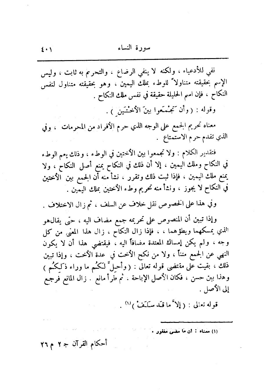وقوله: (وَأَنْ تَجْمَعُوا بَيْنَ الْأُخْتَيْنِ) .