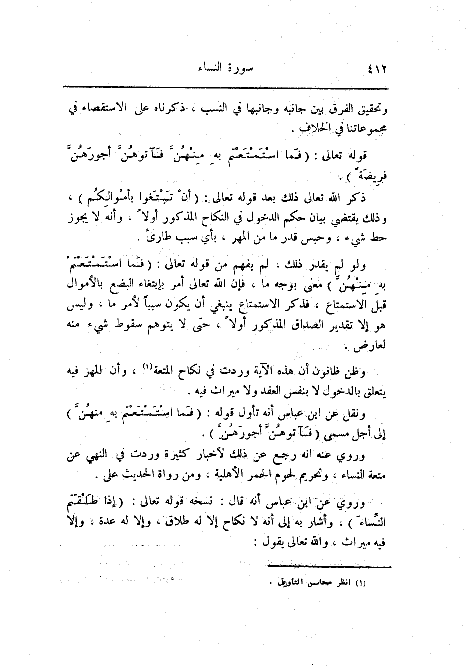 ونقل عن ابن عباس أنه تأول قوله: (فَمَا اسْتَمْتَعْتُمْ بِهِ مِنْهُنَّ) إلى أجل مسمى (فَآتُوهُنَّ أُجُورَهُنَّ) .