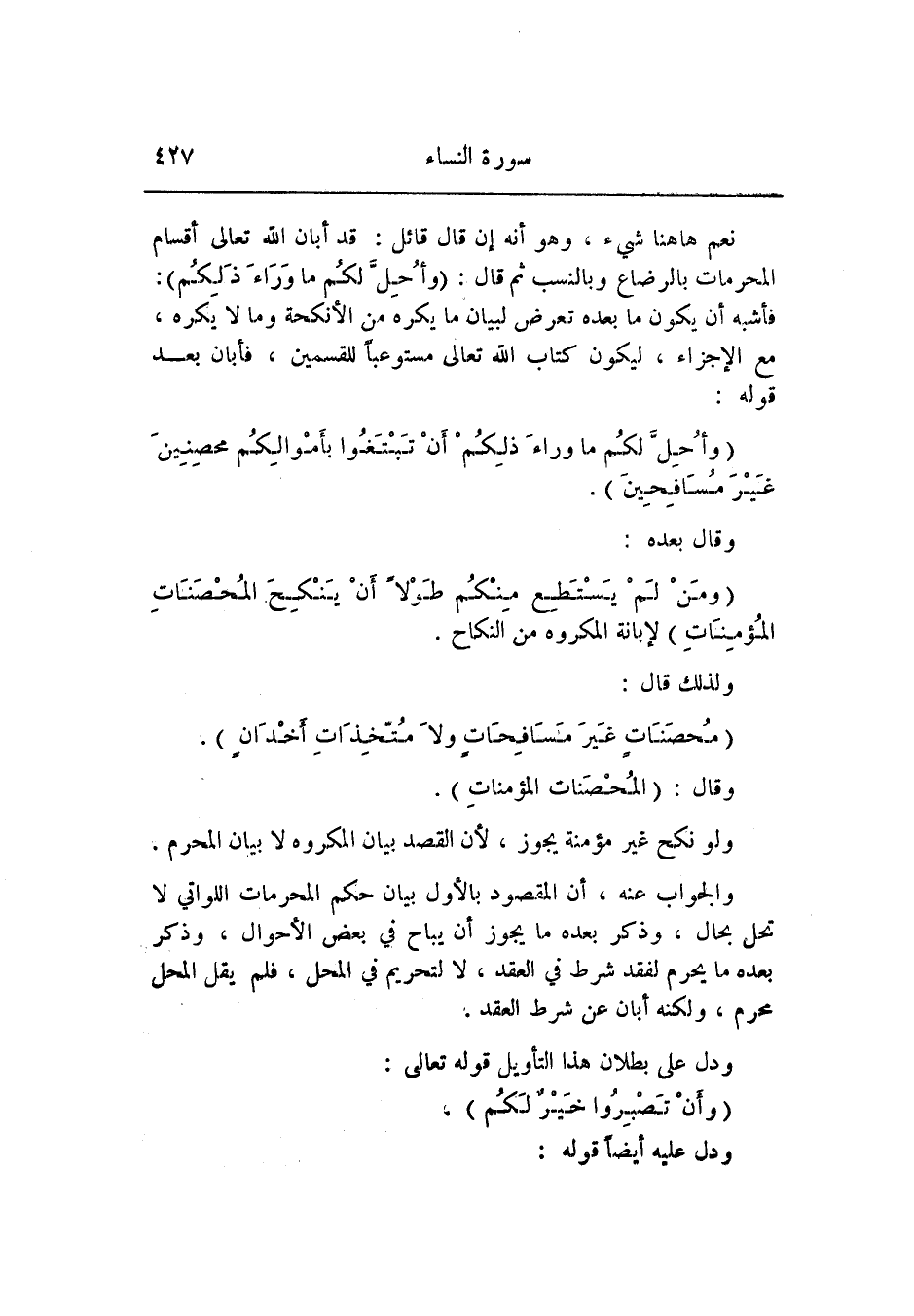 فأشبه أن يكون ما بعده تعرض لبيان ما يكره من الأنكحة وما لا يكره، مع الإجزاء، ليكون كتاب الله تعالى مستوعبا للقسمين، فأبان بعد قوله:
