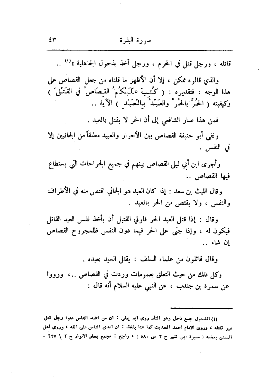 والذي قالوه ممكن، إلا أن الأظهر ما قلناه من جعل القصاص على هذا الوجه، فتقديره: (كُتِبَ عَلَيْكُمُ الْقِصاصُ فِي الْقَتْلى) وكيفيته (الْحُرُّ بِالْحُرِّ وَالْعَبْدُ بِالْعَبْدِ) الآية..
