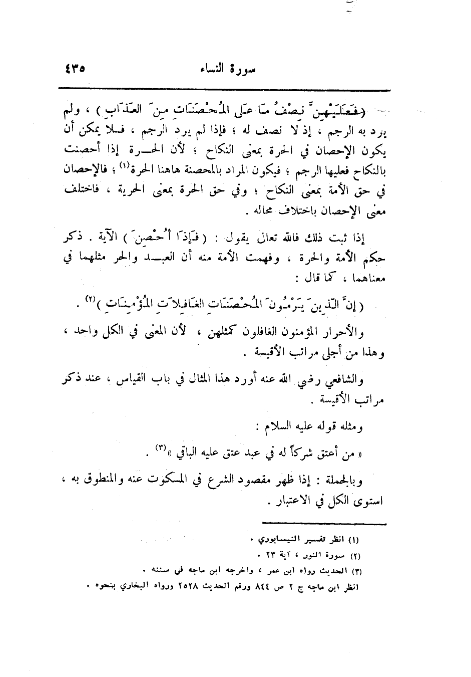 والأحرار المؤمنون الغافلون كمثلهن، لأن المعنى في الكل واحد، وهذا من أجلى مراتب الأقيسة.