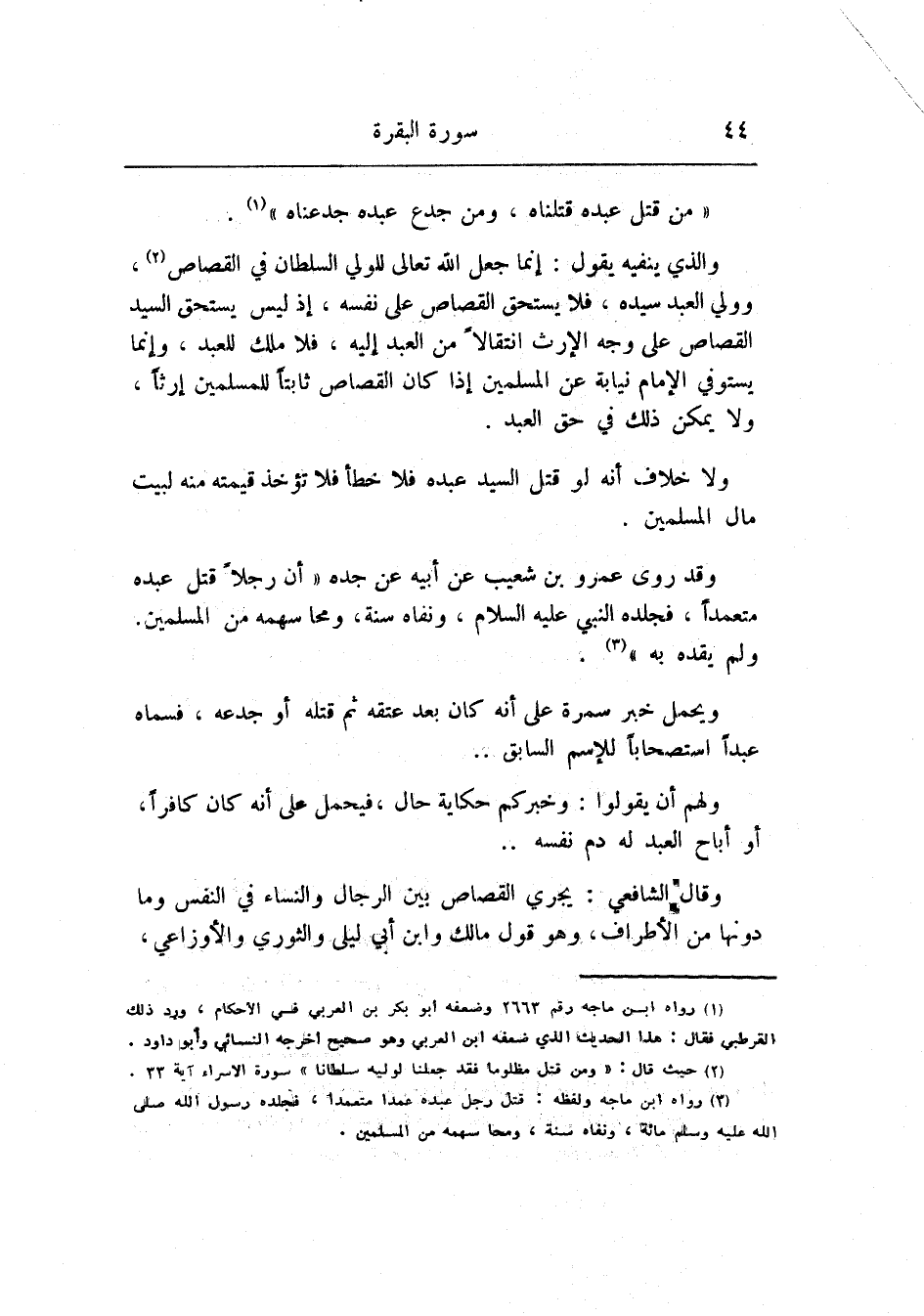 (3) رواه ابن ماجة ولفظه: قتل رجل عبده عمدا متعمدا، فجلده رسول الله صلّى الله عليه وسلم مائة، ونفاه سنة، ومحا سهمه من المسلمين.