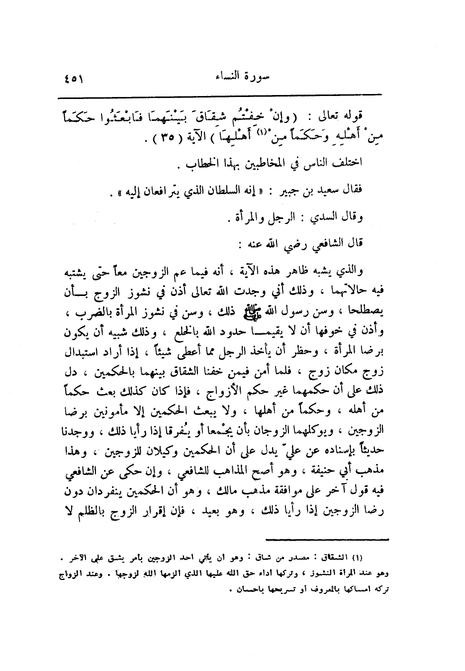 فقال سعيد بن جبير: «إنه السلطان الذي يترافعان إليه» .
