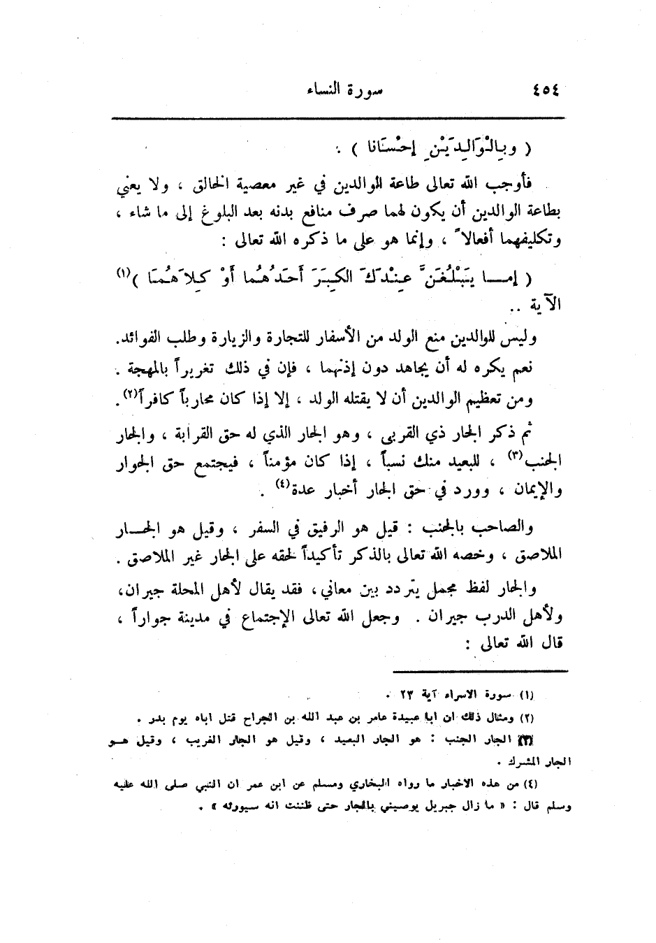 (4) من هذه الاخبار ما رواه البخاري ومسلم عن ابن عمر أن النبي صلّى الله عليه وسلم قال: «ما زال جبريل يوصيني بالجار حتى ظننت انه سيورثه» .