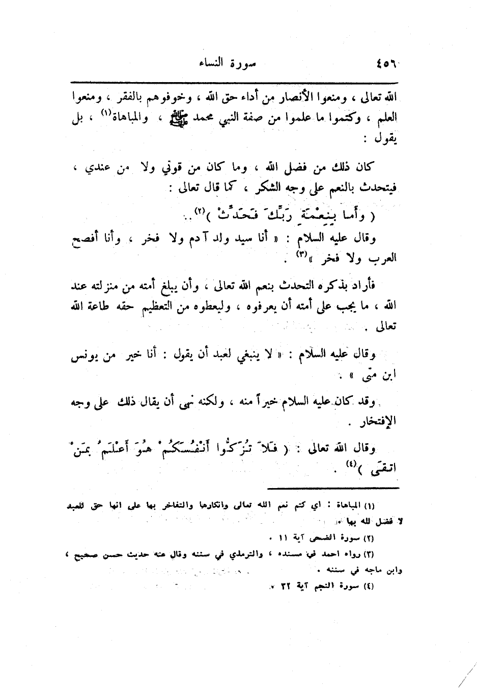 (1) المباهاة: أي كتم نعم الله تعالى وإنكارها والتفاخر بها على أنها حق للعبد لا فضل لله بها.