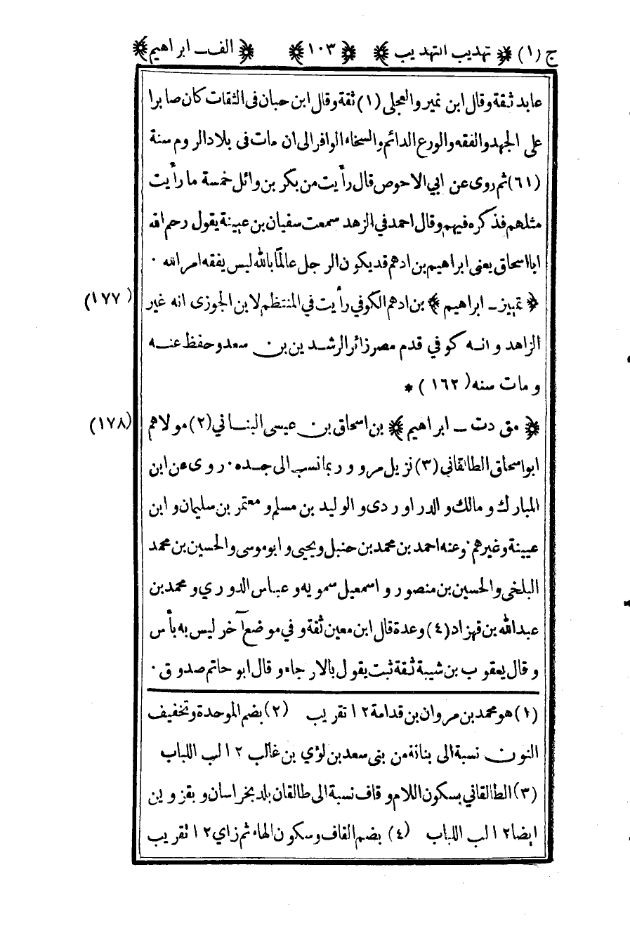 178 ـ "مق د ت- إبراهيم" بن إسحاق بن عيسى البناني2 مولاهم أبو إسحاق الطالقاني3 نزيل مرو وربما نسب إلى جده. روى عن ابن المبارك ومالك والداروردي والوليد بن مسلم, ومعتمر بن سليمان وابن عيينة وغيرهم. وعنه أحمد بن محمد بن حنبل ويحيى وأبو موسى والحسين بن محمد البلخي, والحسين بن منصور وإسماعيل سمويه وعباس الدوري, ومحمد بن عبد الله بن قهزاد4 وعدة. قال بن معين: "ثقة", وفي موضع آخر: "ليس به بأس", وقال يعقوب بن شيبة: "ثقة ثبت يقول بالإرجاء", وقال أبو حاتم: "صدوق".