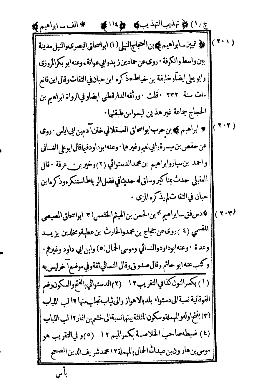 201 ـ "تمييز- إبراهيم" بن الحجاج النيلي1 أبو إسحاق البصري, والنيل مدينة بين واسط والكوفة. روى عن حماد بن زيد وأبي عوانة, وعنه أبو بكر المروزي وأبو يعلى أيضا وخليفة بن خياط. ذكره بن حبان في الثقات, وقال ابن قانع مات سنة "232". قلت: ووثقه الدارقطني أيضا, وفي الرواة إبراهيم بن الحجاج جماعة غير هذين ليسوا من طبقتهما.