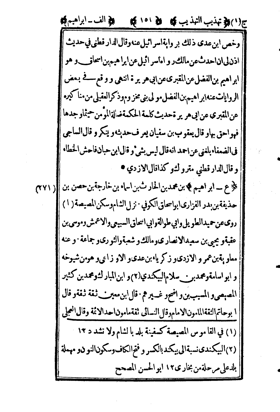 271 ـ "ع - إبراهيم" بن محمد بن الحارث بن أسماء بن خارجة بن حصن بن حذيفة بن بدر الفزاري أبو إسحاق الكوفي نزيل الشام وسكن المصيصة1. روى عن حميد الطويل وأبي طوالة وأبي إسحاق السبيعي والأعمش وموسى بن عقبة ويحيى بن سعيد الأنصاري, ومالك وشعبة والثوري وجماعة. وعنه معاوية بن عمرو الأزدي وزكرياء بن عدي والأوزاعي وهو من شيوخه, وأبو أسامة ومحمد بن سلام البيكندي2 وابن المبارك ومحمد بن كثير المصيصي والمسيب بن واضح وغيرهم. قال ابن معين: "ثقة ثقة". وقال أبو حاتم: "الثقة المأمون الإمام", وقال النسائي: "ثقة مأمون أحد الأئمة", وقال العجلي: