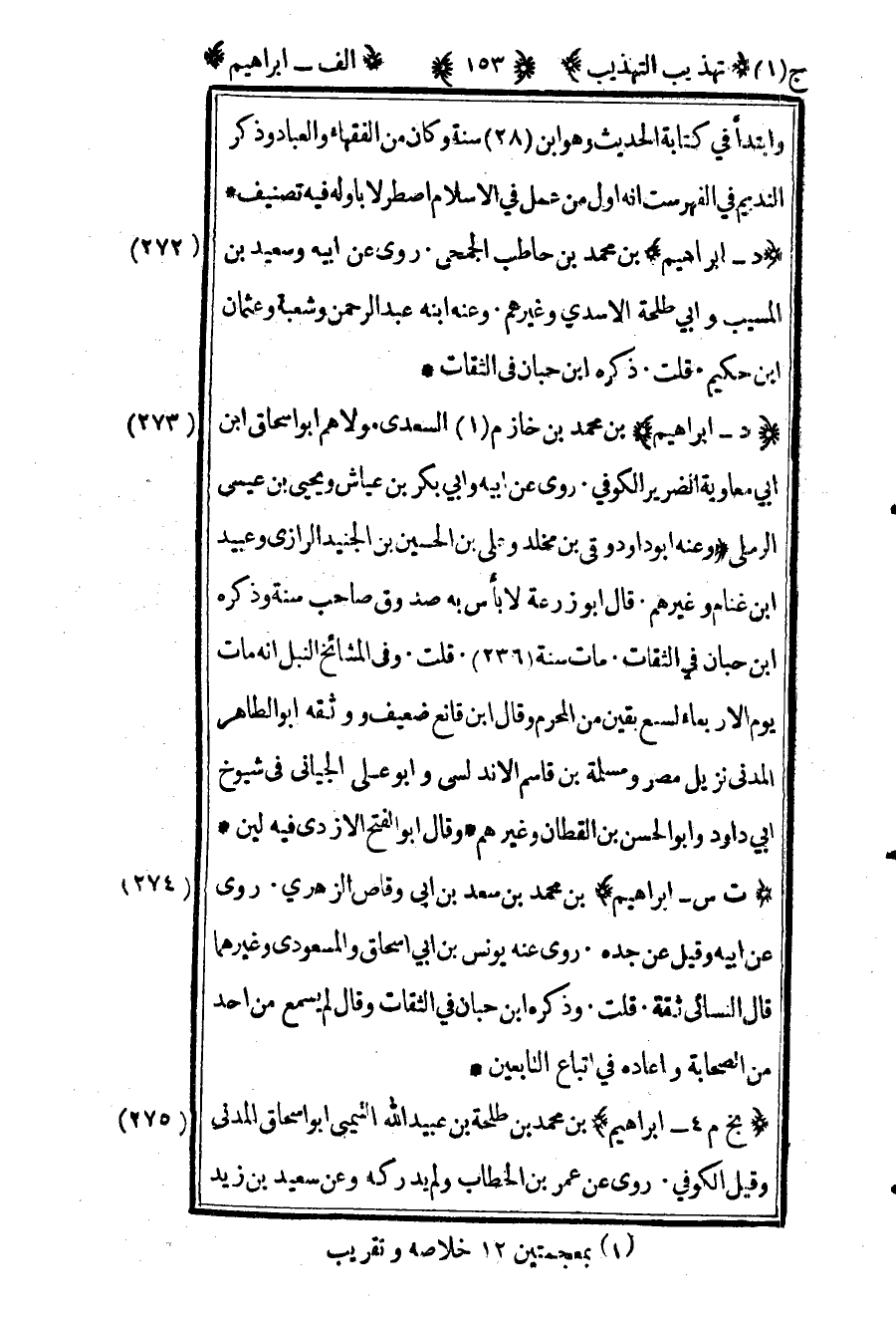 272 ـ "د - إبراهيم" بن محمد بن حاطب الجمحي. روى عن أبيه وسعيد بن المسيب وأبي طلحة الأسدي وغيرهم. وعنه ابنه عبد الرحمن وشعبة وعثمان بن حكيم. قلت: "وذكره بن حبان في الثقات".