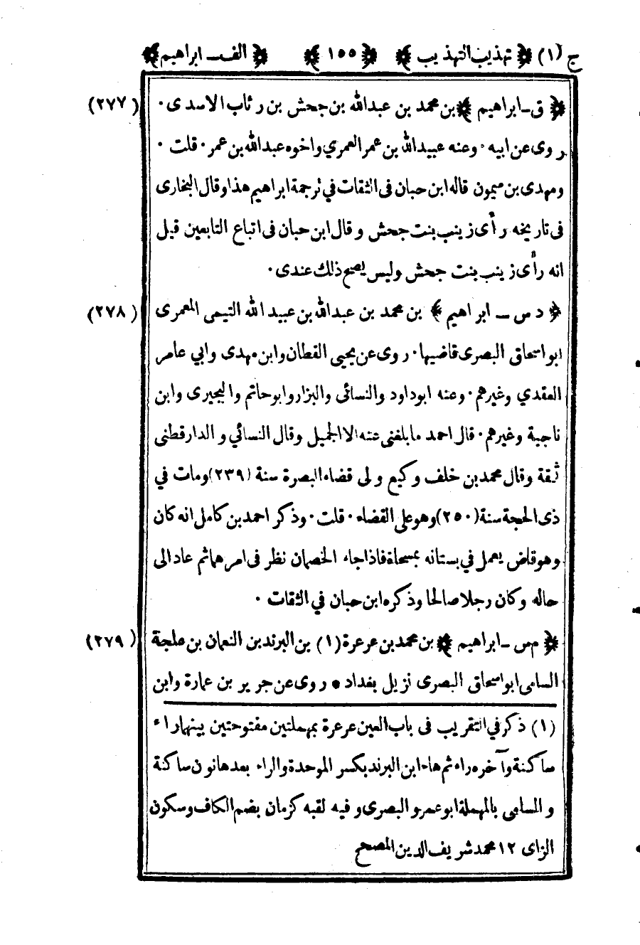 279 ـ "م س - إبراهيم" بن محمد بن عرعرة1 بن البرند بن النعمان بن علجة السامي أبو إسحاق البصري نزيل بغداد. روى عن جرير بن عمارة وابن