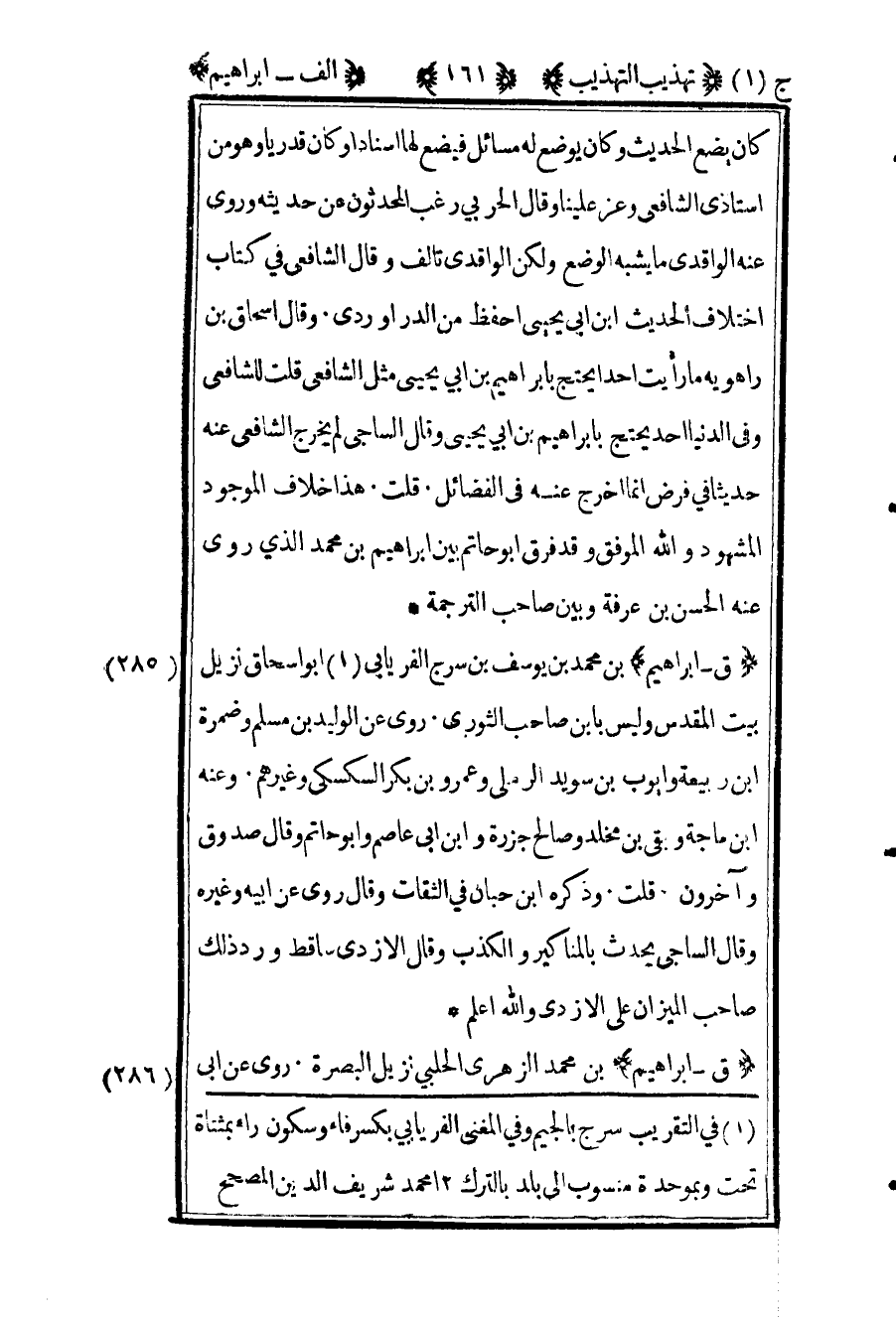 286 ـ "ق - إبراهيم" بن محمد الزهري الحلبي نزيل البصرة روى عن أبي