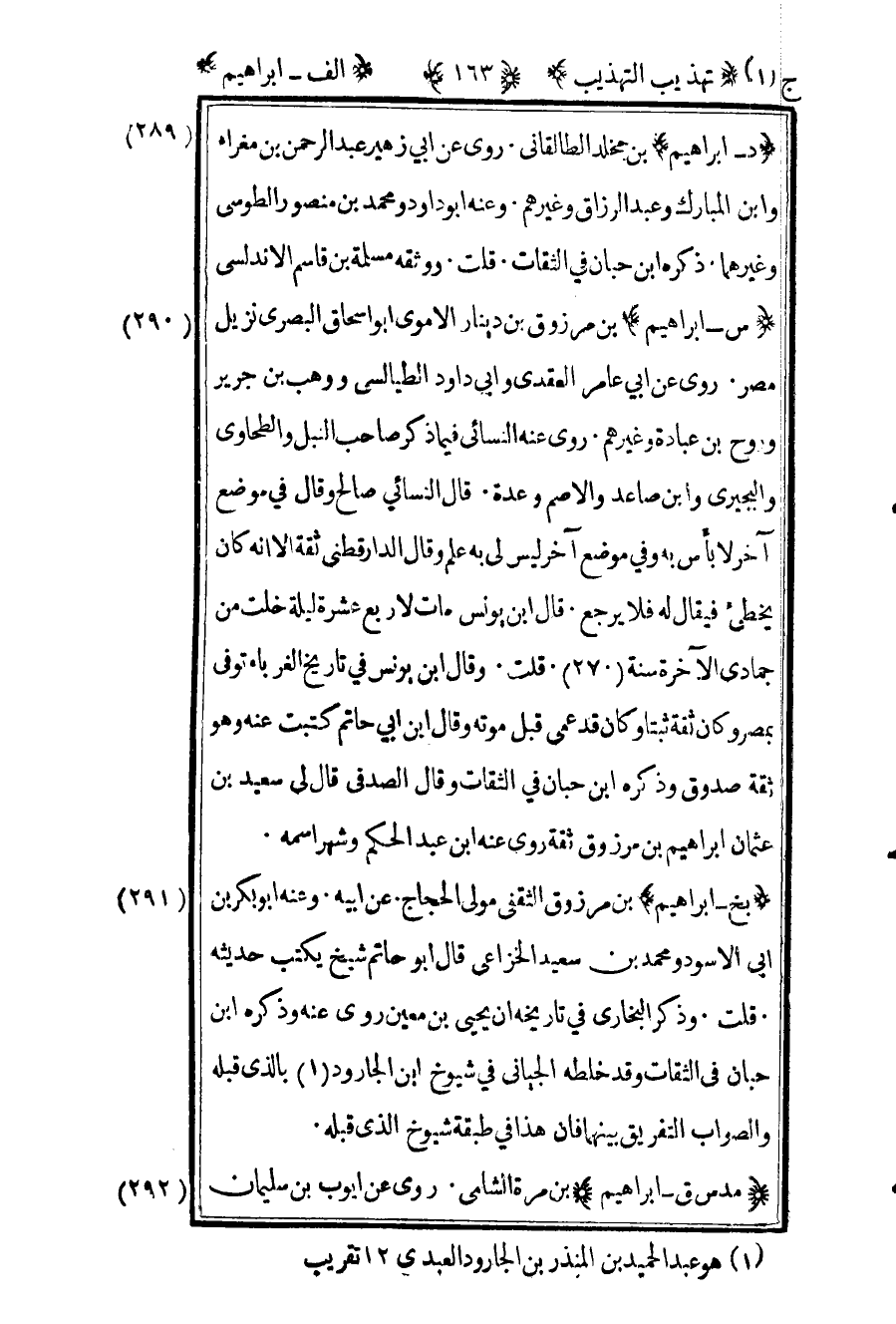 289 ـ "د - إبراهيم" بن مخلد الطالقاني. روى عن أبي زهير عبد الرحمن بن مغراء وابن المبارك وعبد الرزاق وغيرهم. وعنه أبو داود ومحمد بن منصور الطوسي وغيرهما. ذكره ابن حبان في الثقات. قلت: "ووثقه مسلمة بن قاسم الأندلسي".