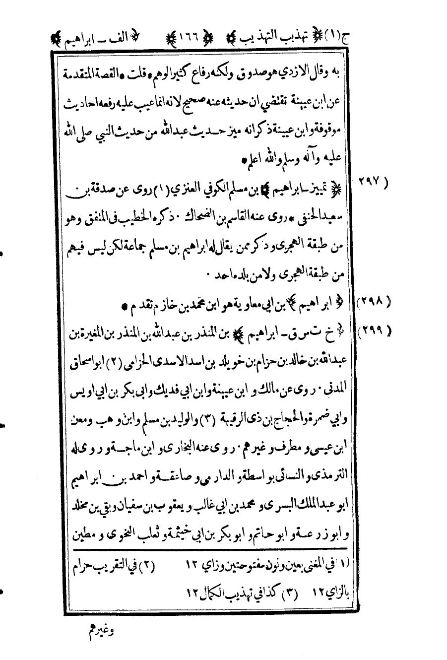 297 ـ "تمييز- إبراهيم" بن مسلم الكوفي العنزي1 روى عن صدقة بن سعيد الحنفي. روى عنه القاسم بن الضحاك. ذكره الخطيب في المتفق وهو من طبقة الهجري وذكر ممن يقال له إبراهيم بن مسلم جماعة لكن ليس فيهم من طبقة الهجري ولا من بلده أحد.