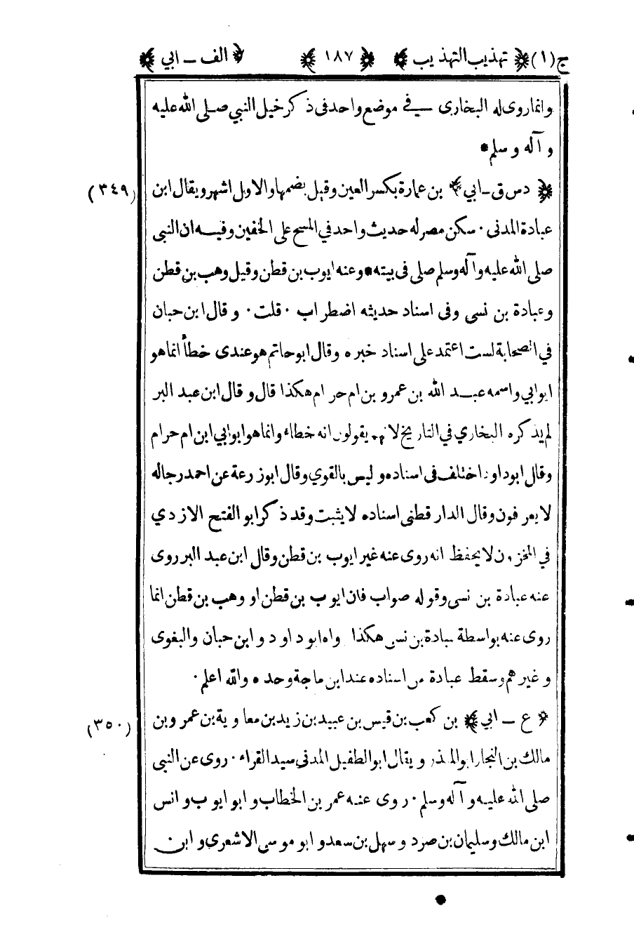 349 ـ "د س ق - أبي" بن عمارة بكسر العين وقيل بضمها والأول أشهر ويقال ابن عبادة المدني. سكن مصر له حديث واحد في المسح على الخفين وفيه أن النبي صلى الله عليه وآله وسلم: "صلى في بيته". وعنه أيوب بن قطن وقيل وهب بن قطن وعبادة بن نسي وفي إسناد حديثه اضطراب. قلت: وقال ابن حبان في الصحابة: "لست أعتمد على إسناد خبره" وقال أبو حاتم: "هو عندي خطأ إنما هو أبو أبي واسمه عبد الله بن عمرو بن أم حرام" هكذا قال وقال ابن عبد البر: "لم يذكره البخاري في التاريخ لأنهم يقولون إنه خطاء وإنما هو أبو أبي بن أم حرام" وقال أبو داود: "اختلف في إسناده وليس بالقوي" وقال أبو زرعة عن أحمد: "رجاله لا يعرفون" وقال الدارقطني: "إسناده لا يثبت" وقد ذكره أبو الفتح الأزدي في المخزون لا يحفظ أنه روى عنه غير أيوب بن قطن. وقال ابن عبد البر روى عنه عبادة بن نسي وقوله صواب فإن أيوب بن قطن أو وهب بن قطن إنما روى عنه بواسطة عبادة بن نسي هكذا رواه أبو داود وابن حبان والبغوي وغيرهم وسقط عبادة من إسناده عند بن ماجة وحده -والله أعلم-.