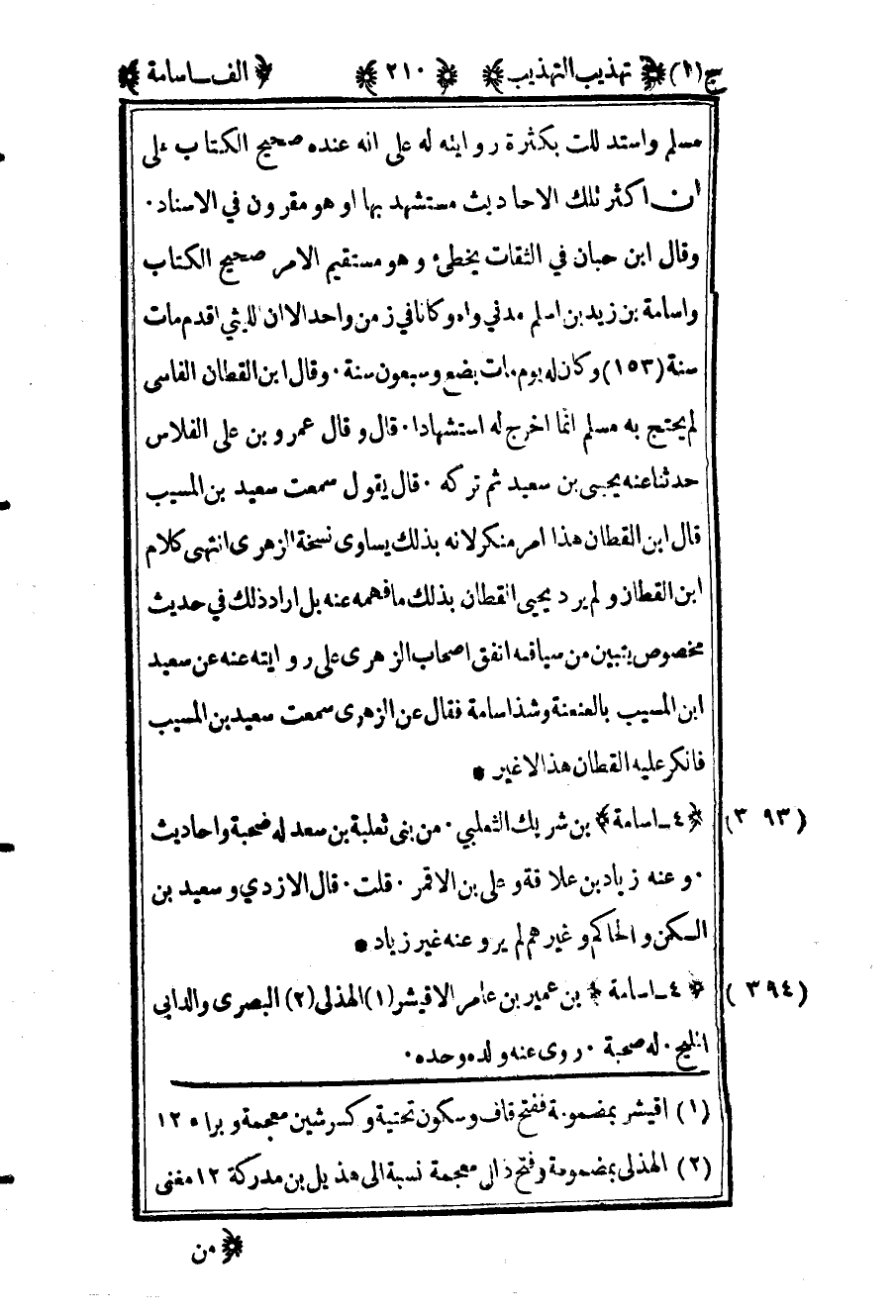 مسلم واستدللت بكثرة روايته له على أنه عنده صحيح الكتاب على أن أكثر تلك الأحاديث مستشهد بها أو هو مقرون في الإسناد". وقال ابن حبان في الثقات: "يخطئ وهو مستقيم الأمر صحيح الكتاب" وأسامة ابن زيد بن أسلم مدني واه وكانا في زمن واحد إلا أن الليثي أقدم مات سنة "153" وكان له يوم مات بضع وسبعون سنة. وقال ابن القطان الفاسي: "لم يحتج به مسلم إنما أخرج له استشهادا". قال وقال عمرو ابن علي الفلاس حديثا عنه يحيى بن سعيد ثم تركه قال يقول سمعت سعيد بن المسيب قال ابن القطان هذا أمر منكر لأنه بذلك يساوي نسخة الزهري, انتهى كلام بن القطان. ولم يرد يحيى بذلك ما فهمه عنه بل أراد ذلك في حديث مخصوص يتبين من سياقه اتفق أصحاب الزهري على روايته عنه عن سعيد بن المسيب بالعنعنة وشذ أسامة فقال عن الزهري سمعت سعيد بن المسيب فأنكر عليه القطان هذا لاغير.