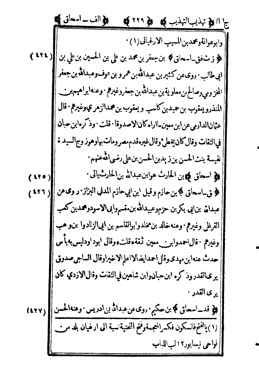 425 ـ "إسحاق" بن الحارث هو بن عبد الله بن الحارث يأتي.