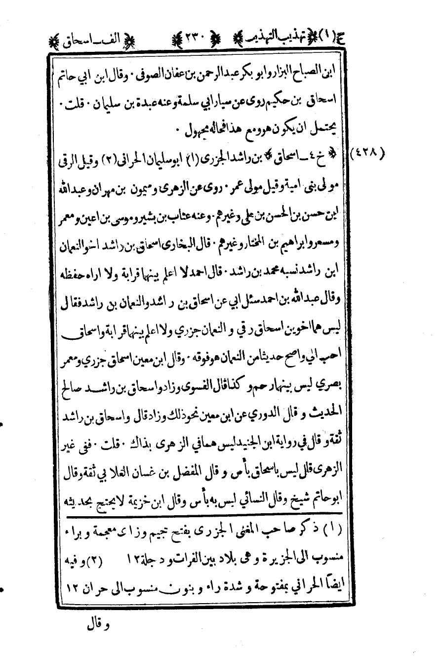 1 - ذكر صاحب المغني الجزري بفتح جيم وزاي معجمة وبراء منسوب إلى الجزيرة وهي بلاد بين الفرات ودجلة 12