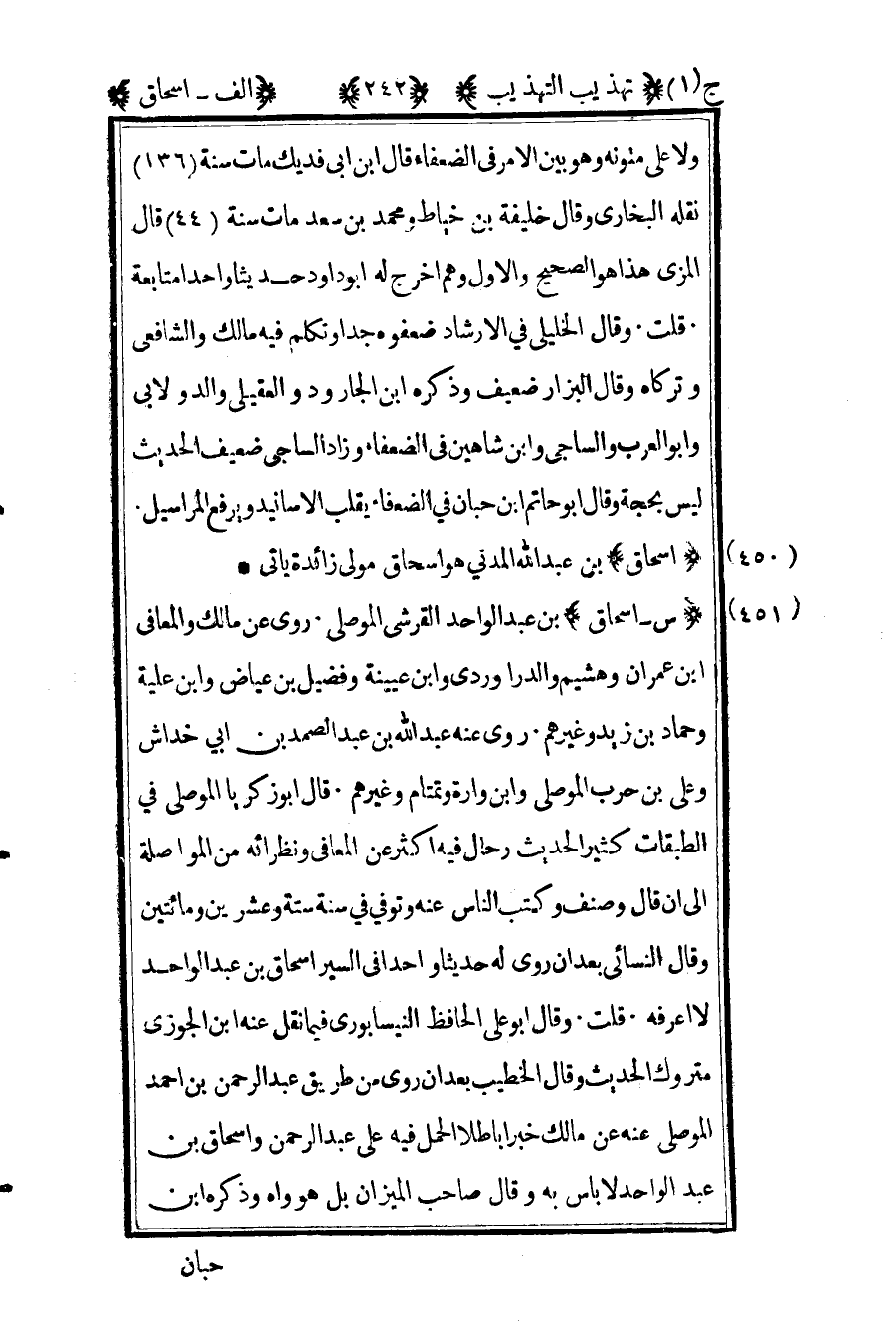 450 ـ "إسحاق" بن عبد الله المدني هو إسحاق مولى زائدة يأتي.