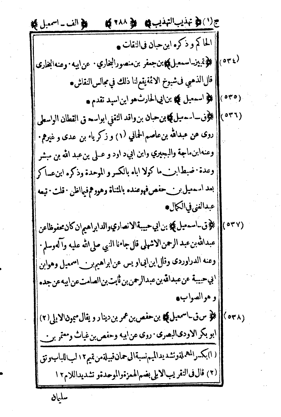 1 - بكسر المهملة وتشديد الميم نسبة إلى حمان قبيلة من تميم 12 لب اللباب وتق