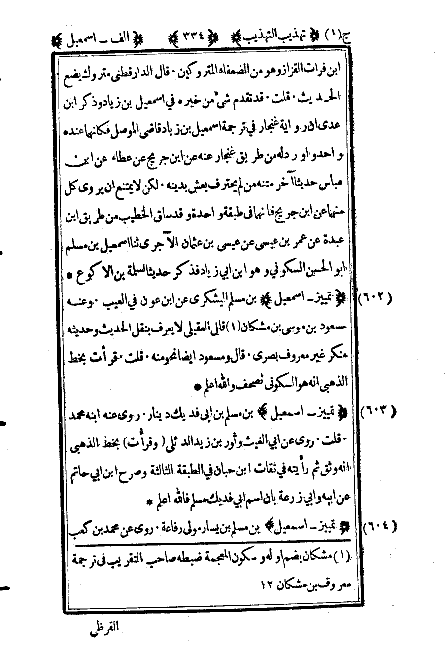 602 ـ "تمييز- إسماعيل" بن مسلم اليشكري عن ابن عون في العيب. وعنه مسعود بن موسى مشكان1 قال العقيلي: "لا يعرف بنقل الحديث وحديثه منكر غير معروف بصري". قال ومسعود أيضا نحوا منه. قلت: "قرأت بخط الذهبي إنه هو السكوني تصحف والله أعلم".