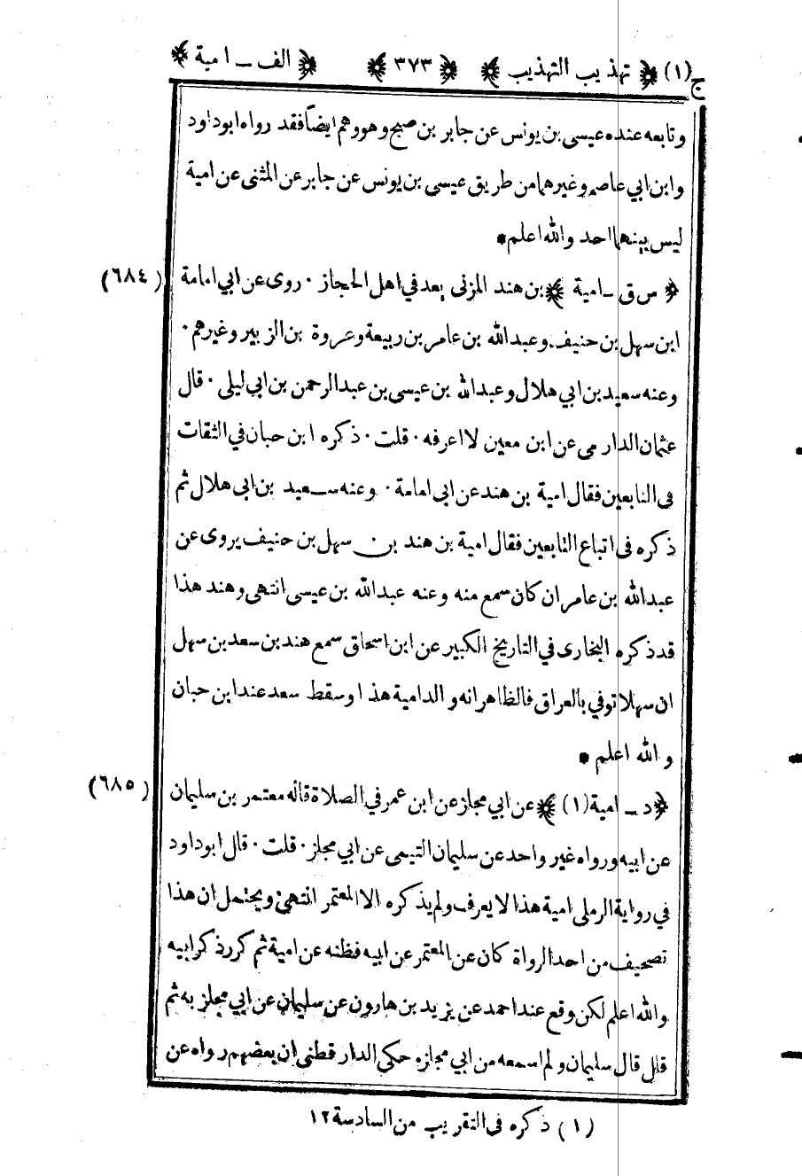 685 ـ "د - أمية"1 عن أبي مجلز عن بن عمر في الصلاة قال معتمر بن سليمان عن أبيه ورواه غير واحد عن سليمان التيمي عن أبي مجلز. قلت: قال أبو داود في رواية الرملي: "أمية هذا لا يعرف ولم يذكره إلا المعتمر", انتهى. ويحتمل أن هذا تصحيف من أحد الرواة كان عن المعتمر عن أبيه فظنه عن أمية ثم كرر ذكر أبيه -والله أعلم- لكن وقع عند أحمد عن يزيد بن هارون عن سليمان عن أبي مجلز به ثم قال: قال سليمان ولم أسمعه من أبي مجلز حكى الدارقطني أن بعضهم رواه عن