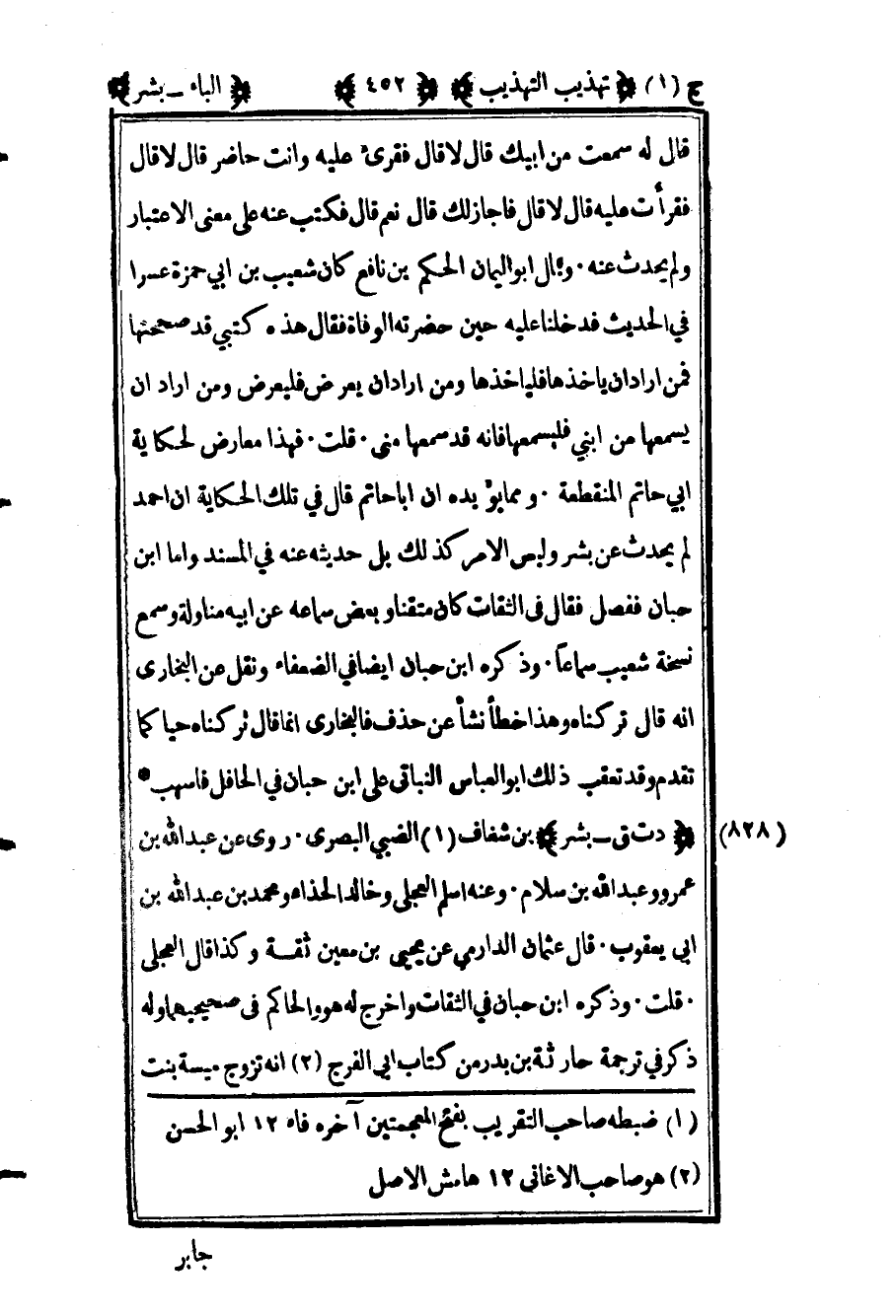 828 ـ "د ت ق - بشر" بن شغاف1 الضبي البصري. روى عن عبد الله بن عمرو وعبد الله بن سلام وعنه أسلم العجلي وخالد الحذاء ومحمد بن عبد الله بن أبي يعقوب. قال عثمان الدارمي عن يحيى بن معين: "ثقة", وكذا قال العجلي. قلت: وذكره ابن حبان في الثقات وأخرج له هو والحاكم في صحيحهما وله ذكر في ترجمة حارثة بن بدر من كتاب أبي الفرج2 أنه تزوج ميسة بنت