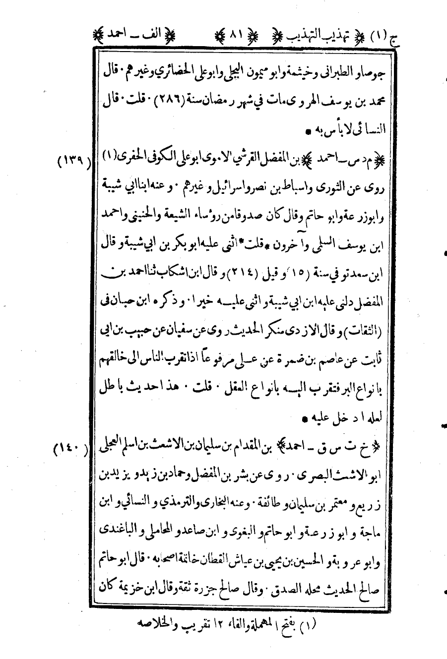1 - بفتح المهملة والفاء 12تقريب الخلاصة