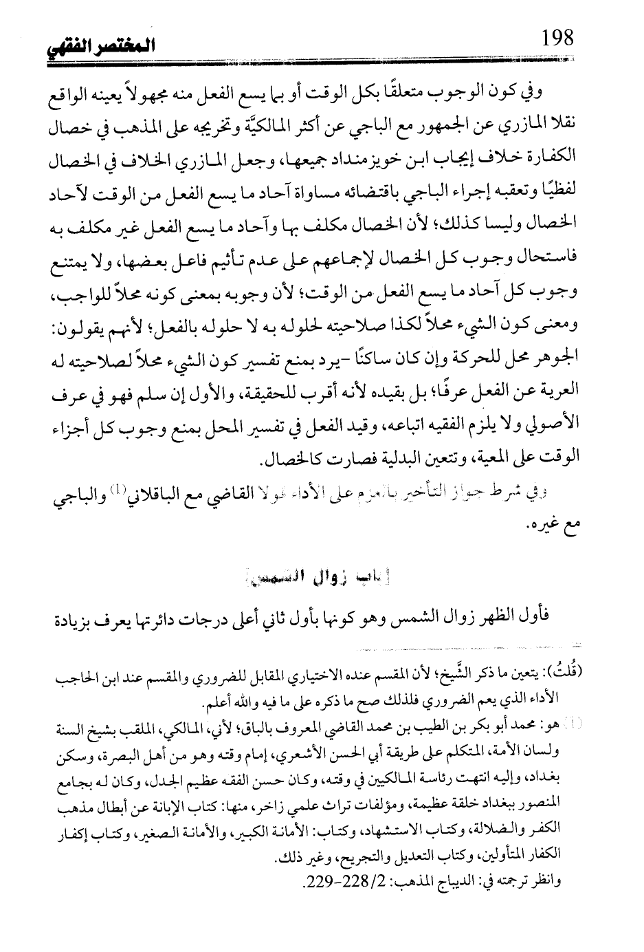 وفي كون الوجوب متعلقًا بكل الوقت أو بما يسع الفعل منه مجهولاً يعينه الواقع نقلا المازري عن الجمهور مع الباجي عن أكثر المالكيَّة وتخريجه على المذهب في خصال الكفارة خلاف إيجاب ابن خويز منداد جميعها، وجعل المازري الخلاف في الخصال لفظيًا وتعقبه إجراء الباجي باقتضائه مساواة آحاد ما يسع الفعل من الوقت لآحاد الخصال وليسا كذلك؛ لأن الخصال مكلف بها وآحاد ما يسع الفعل غير مكلف به فاستحال وجوب كل الخصال لإجماعهم على عدم تأثيم فاعل بعضها، ولا يمتنع وجوب كل آحاد ما يسع الفعل من الوقت؛ لأن وجوبه بمعنى كونه محلاً للواجب، ومعنى كون الشيء محلاً لكذا صلاحيته لحلوله به لا حلوله بالفعل؛ لأنهم يقولون: الجوهر محل للحركة وإن كان ساكنًا - يرد بمنع تفسير كون الشيء محلاً لصلاحيته له العرية عن الفعل عرفًا؛ بل يقيده لأنه أقرب للحقيقة، والأول إن سلم فهو في عرف الأصولي ولا يلزم الفقيه اتباعه، وقيد الفعل في تفسير المحل بمنع وجوب كل أجزاء الوقت على المعية، وتتعين البدلية فصارت كالخصال.