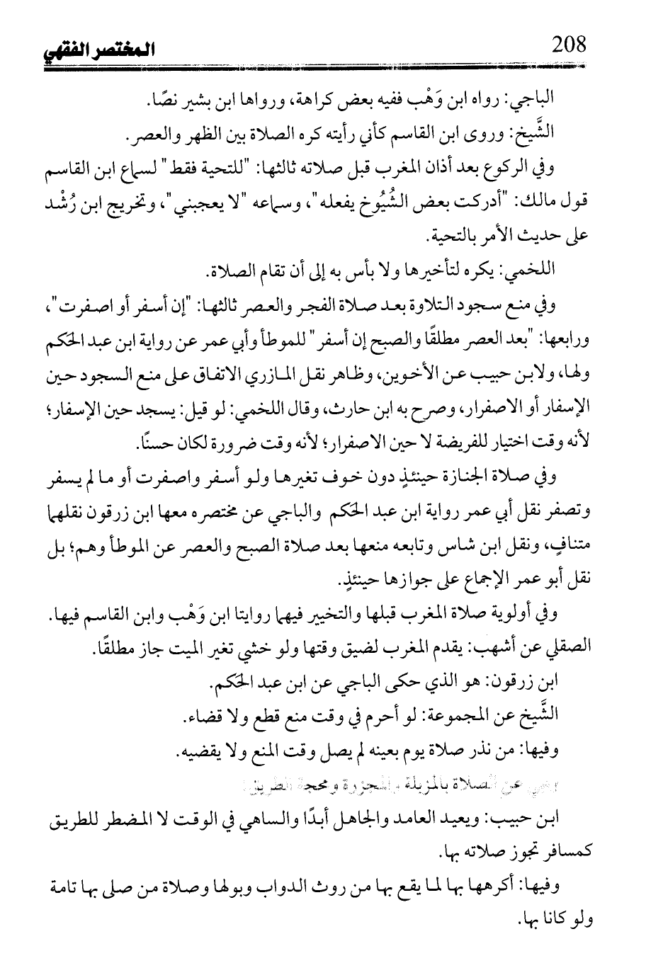 ابن حبيب: ويعيد العامد والجاهل أبدًا والساهي في الوقت لا المضطر للطريق كمسافر تجوز صلاته بها.