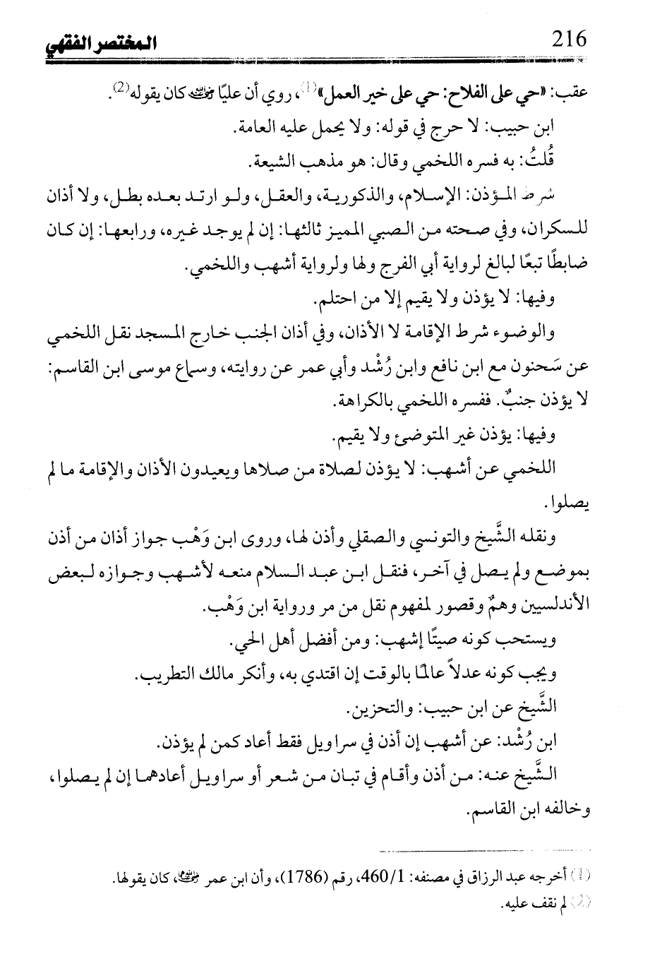 الشيخ رُشد: عن أشهب إن أذن في سرا ويل فقط أعاد كمن لم يؤذن.