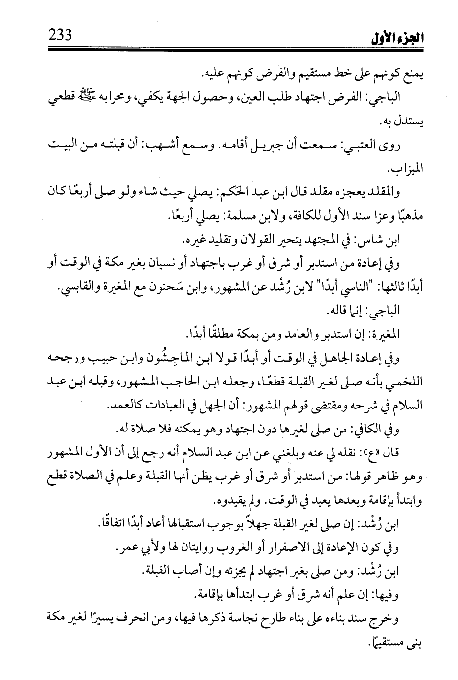 ابن رُشد: ومن صلى بغير اجتهاد لم يجزئه وإن أصاب القبلة.