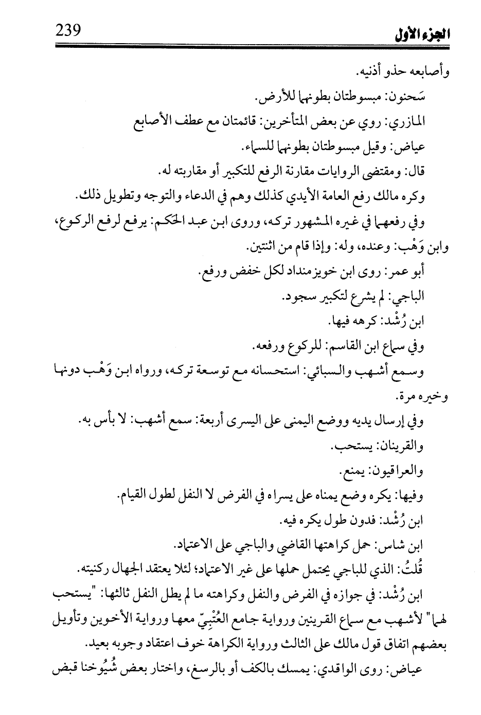 المازري: روي عن بعض المتأخرين: قائمتان مع عطف الأصابع.