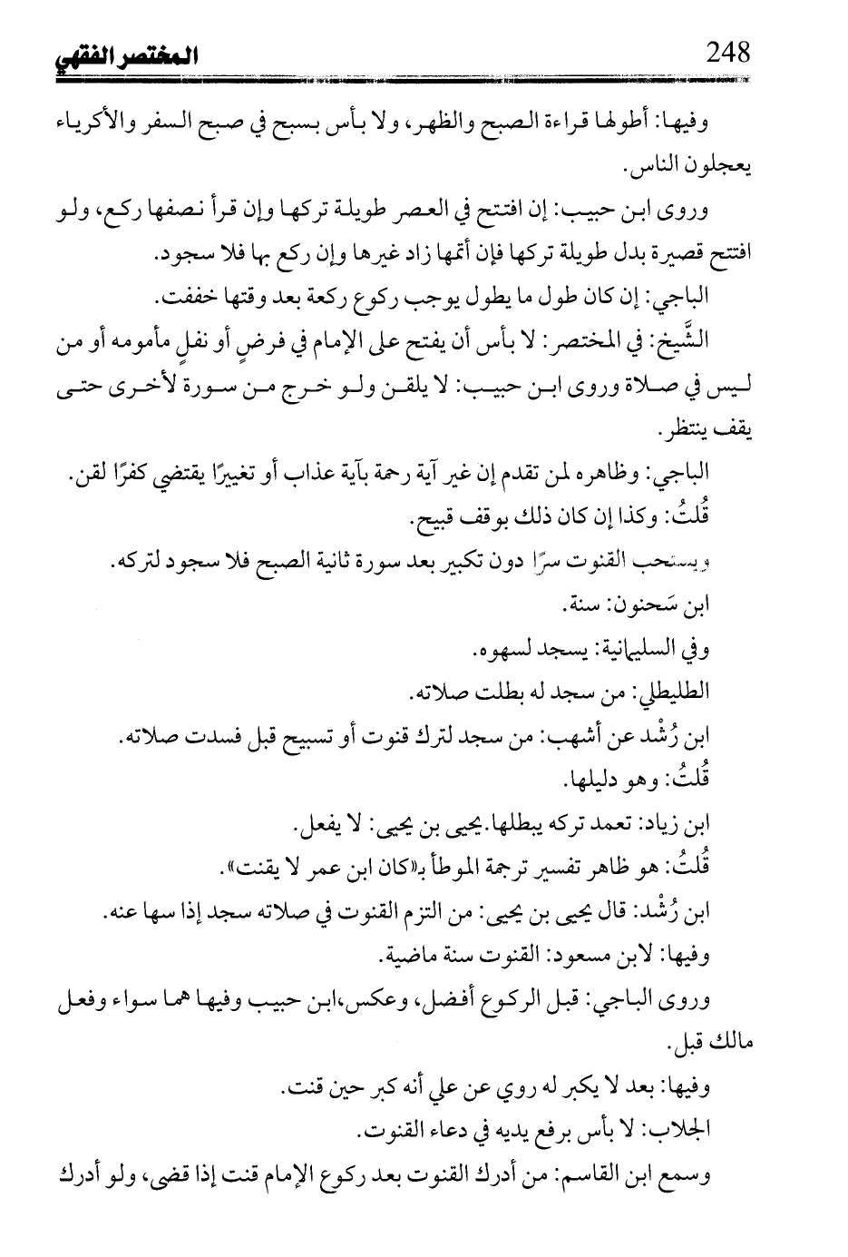 وفيها: لابن مسعود: القنوت سنة ماضية.